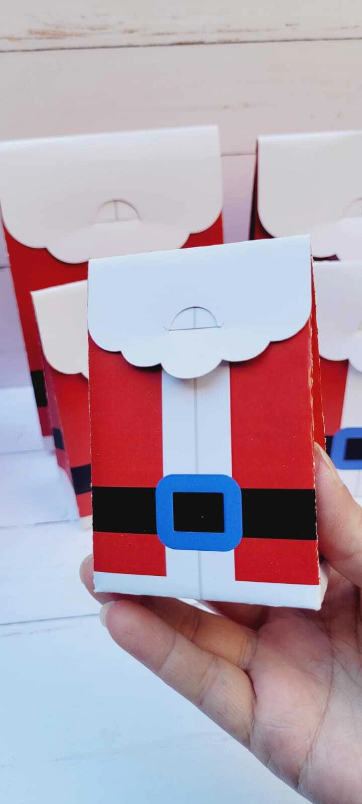 Impresas en cartulina de 300 grs, con diseño inspirado en el clásico traje de Papá Noel, estas bolsitas son un detalle encantador para tus empaques navideños 🎁